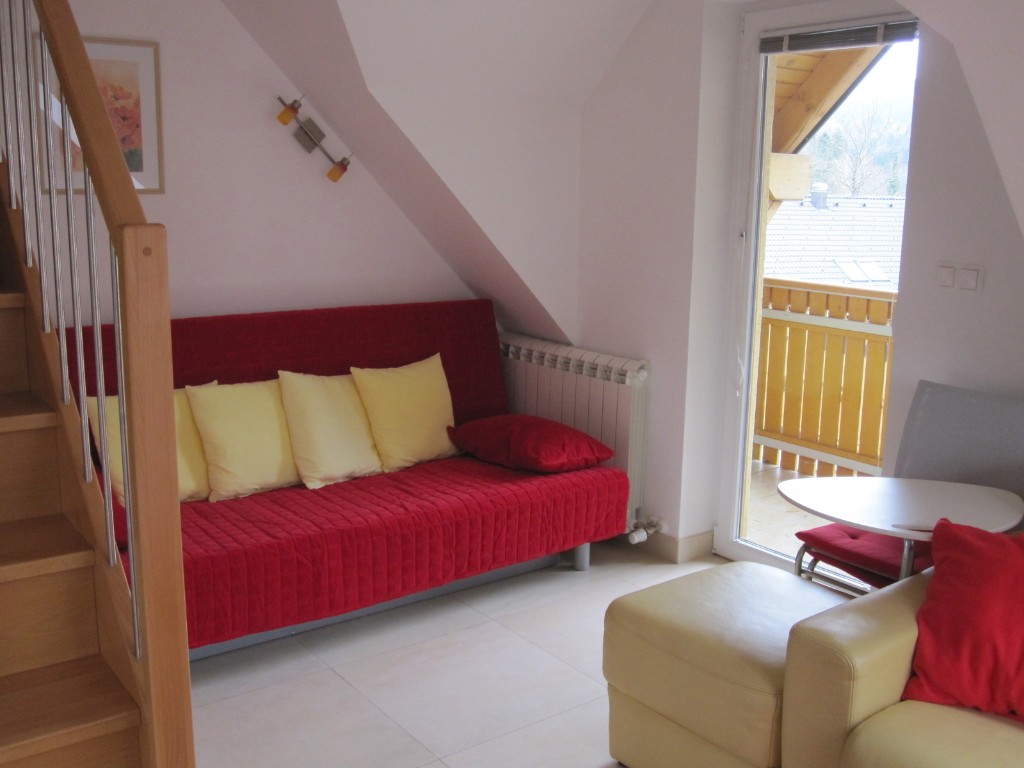 The spacious apartment is suitable for 2 to 6 persons and is an ideal holiday accommodation for families with young children. It has views of the surrounding hills, mountains, ski slope and village center. Functional layout and modern equipment make for a comfortable and comfortable stay in an apartment in which you will not miss anything. We are located on the outskirts of Kranjska Gora; there are hiking and biking trails, a bike park and a summer toboggan run nearby ... but shops and the center are only 100-200m away. At the Ramada Resort, you can also relax in the swimming pool, wellness and saunas.
